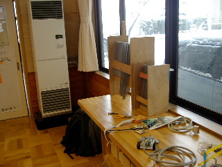 先日、技家の研修で下諏訪中学校へ行った際、技術棟は全く新しく立て直してあったのに、差し金やげんのう、かんななどの収納棚は自分が勤務していた時代に作った物(かれこれ10年前)を使って頂いていたので、とてもうれしくなった。物作りはこうして形に残るからいいなぁ。