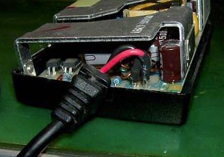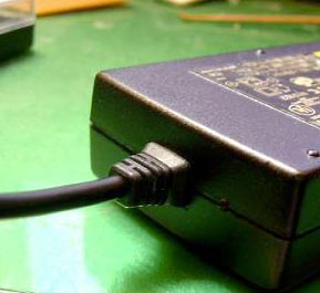 昔一緒だったk先生がパソコンの電源が入らなくなってしまったということで、ノートパソコンを持ってきた。チェックしてみると、ACアダプターが電気をはき出していない。よくあるパターンで、スイッチング電源から出る部分のコードが断線しているようだ。分解して修理することにする。