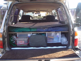 とりあえず、荷台を作ることにした。ランクルの後ろは結構広いので、ベッドにも変更できるようにした。また、常に積んでいる荷物があるので、それを整理できるように考えた。前回も床下に収納できるようにしていたが、今回は押し入れようの引き出しを使って床上げを行った。