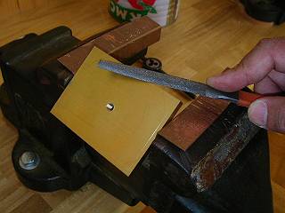 ここまで30分ちょっと。うーん,生徒がやると厳しいかな。今回自分でもやったように,ヤスリがけは金工バイス。タップ立ては木工バイスという風に分担し,場所を入れ替えながら同時進行で進めよう。ただ,木工バイスではダイスを回すための逃げスペースがないので,やはり金工バイスを使うことになりそう。