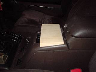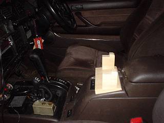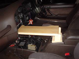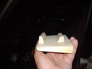 方法は今までも暖めてきていた。左のようなコンソールがあるので,その成型部分に合わせて右のような固定基台部分を作った。製作にあたっては,段ボールで型を取って,現物あわせしながら大きさや形を決めていった。
