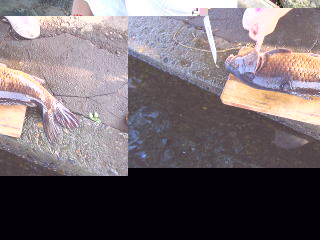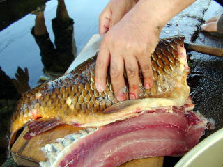 全長50cmを超えようかという大鯉。ここまで大きいと骨も多くなってしまって食べるのはたいへんらしい。