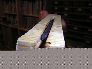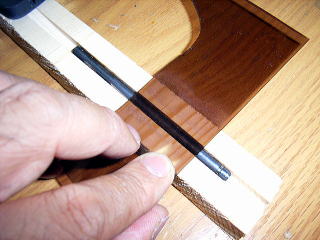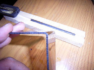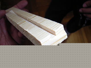 木ぎれに丸鋸で溝を掘った。ちょうど、鉄棒の太さより0.5mmくらい深くした。