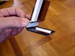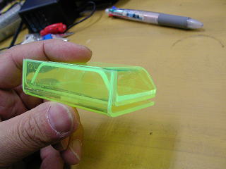 反射板の接合部は、きちんと平らに止まるように、あわせの部分を現物あわせで削った。(左は削る前、右の写真が完成したもの)