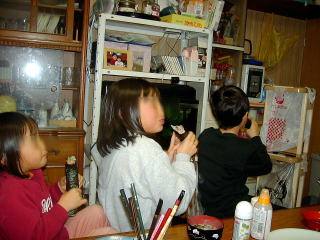 結局2つを作り終えるのに1時間かかった。(2人なので仕上がりは4つだけれど)。出来高払いで100円ずつ渡したところ、もう1セットということになり、また1時間で4つ作り8個ができあがった。さすがにこの時点では9時をすぎる頃になり、集中力もなくなったので、残りは自分で作ってみた。こちらは2つを30分くらいで作り上げた。