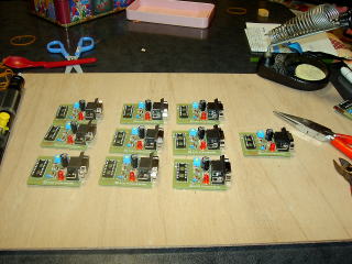 皆が寝た後に、一人で仕上げ、全部で10個の書き込み機が仕上がった。