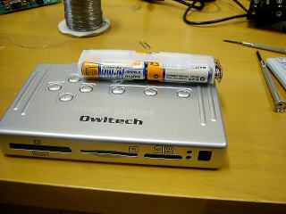 先日購入したメモリープレーヤー。かなり使えるので、毎度のごとく単3のニッケル水素電池で駆動できるように考えてみた。