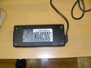 このACアダプタ。調べてみると120Wクラスのどでかい物だった。ヤフーオークションへの出品もなかったが急ぐ物なのでamazonnで調べてみると在庫があったので、そのまま購入。すぐに届いたので渡した。(ちなみに送料無料で7140円)