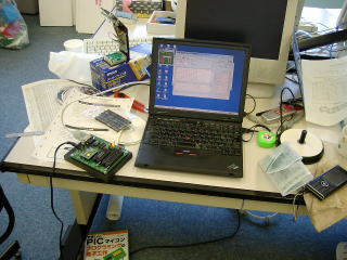 年度末は全く忙しくて動きがとれないのだけれど、ちょうど業者さんが夕方来年度の教材やら学習ノートなどを届けてくれるという連絡があったので、先日作った内部クロック利用検証用ココナッツプロトのソフトウェアを書き込んでみた。