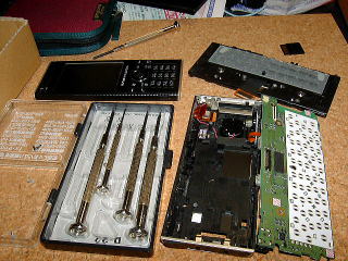 で、ばらしたところ。スライドキーボードもあるので、フレキシブルケーブルが真ん中に通っていた。