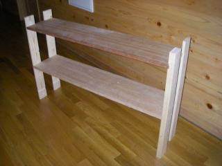 社会の先生に準備室の棚を作りたいと頼まれたので、棚板に1×4材で足を付けて棚にした。