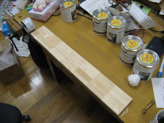 明日一日で、この塗装(ヤスリがけまでは終わっているので、表面のほこりを拭き取るところからスタート)、塗装についてのまとめ(塗装の機能として、見た目をよくすることと、汚れや傷から保護することの2点をおさえる)、題材評価及び学習のまとめと反省をやってしまって、気持ちよく2年生と交代したいところ。ちなみに今年も全員が完成までこぎ着けた。置いていってしまう生徒がいないことを祈りたい。