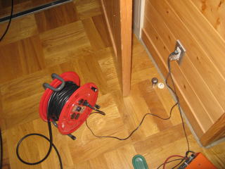 技術室の主幹ブレーカーを落として、発電機からの電気をコンセントにつないでみた。