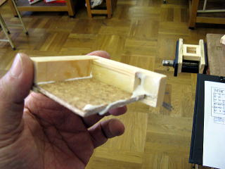 木工万力でちょこっと圧縮。接ぎ部分はこんな感じ。