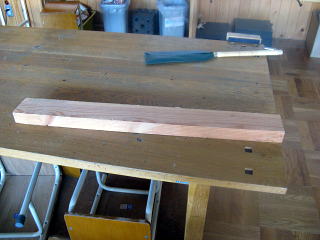 学校で余っていた(先日の耐震工事の際にもらっておいた)材木を斜めに切る。