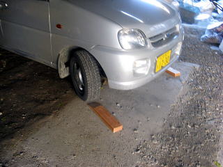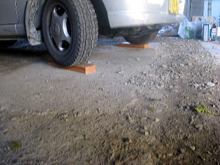 その際、フロアジャッキを差し込むのに車高が低すぎるため、いつも石なんかに載せて高さを上げるのだけれど