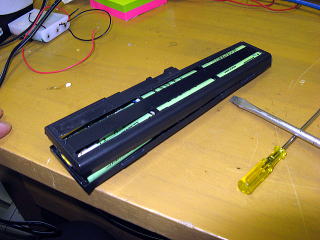 ばらした状態。ちゃんと国産パナソニックのCGR18650Aを使っている。この時点でバッテリーだけ購入して取り替えようかとも思ったけど、1つ1400円くらいするので6つで8400円。これなら安いリビルト品が買えるのでやめた。