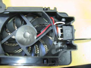 今度はいいかと思ったが、逆に付けることで、少しファンが下がってしまい、からからと接触するようになってしまった。そこで、ちょっとかっこわるいけれど、被覆コードでスペーサーを作ってファンを浮かせた。