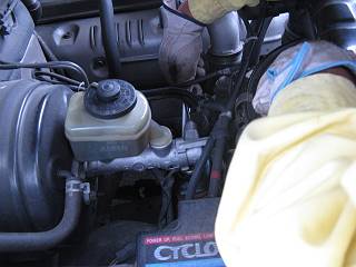 後ろはボルトを手で回してもびくともしないので、ジャッキでレンチを持ち上げてゆるめる。