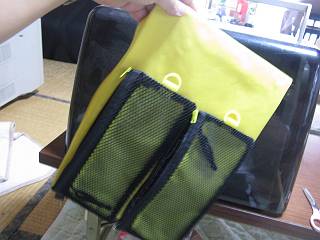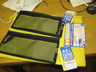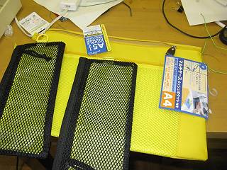100円ショップにて、インナーバッグとメッシュ小物入れを購入。