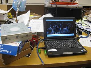 一番安い方法として、デスクトップ用のドライブ+IED(SATA)>USB変換ケーブルを使った。