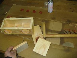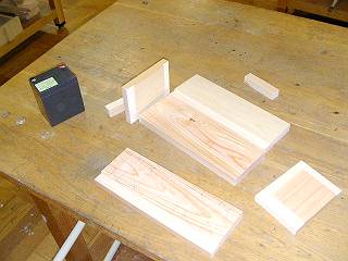 材料は、1年生の木工で使ったあまり材。でも、木曾檜なので、ブランド品の材料。