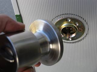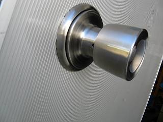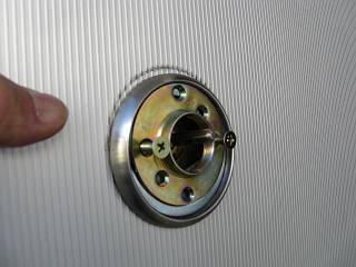 今回のドアノブは内側の取り付けねじがきれいに隠されるような構造だった(学校にあったもう一つの新しい部品は内側に留めるためのねじが露出していた)のでちょっとわかるまでに時間がかかった。(さいしょは校務技師さんにやってもらっていたが自分のところにまわってきた)