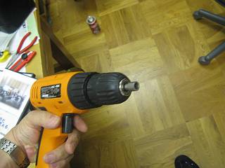 電動ドライバ用のナットビットを使おうとしたが、このボルトはかなり薄くできているので、入り口の面取り部分で逃げてしまう。
