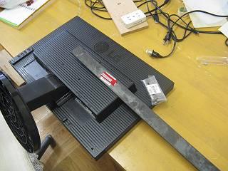 そこへ、合板でVESAマウントにあわせて穴を開けたものをネジ留めしてディスプレイを保持することにした。