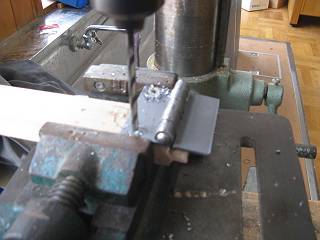 ヒンジは片側にスチール棚の柱にあわせて穴を開けてからスチールベルトに溶接する。