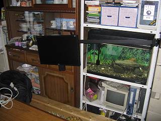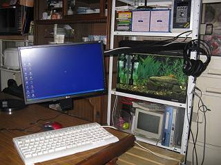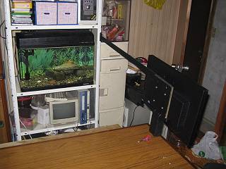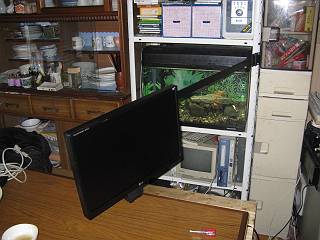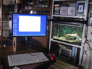 毎回、ディスプレイとキーボード&マウスを横に片付けて使っていたが、いくら液晶ディスプレイで軽くなったとはいえ負担となる。