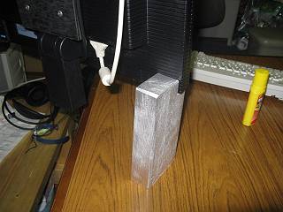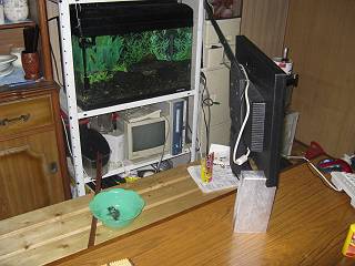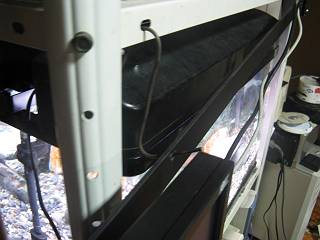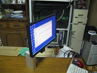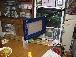 家の食卓で仕事ができるようにアームを作った液晶ディスプレイ。