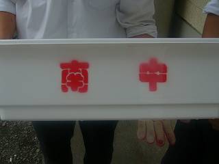 型を使って、スプレーで書くのが効率がよいだろうと言うことになり、「花子」を使ってプリントアウトした。