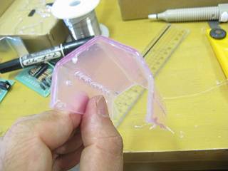 アクリル板を曲げてから両側に銀色のスプレーでコーティング。