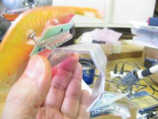 まずは、光ファイバーのようにペット材の中を通して、写真を照らすタイプのパネル型を考えてみた。