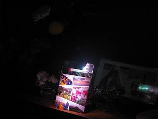 暗いところへ置いてみると、かなりいい感じで写真を浮かび上がらせることができる。