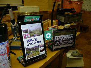 試行錯誤の結果、このような形に落ち着いた。手前を明るく照らしながらも写真スタンドとしての機能も持っている。