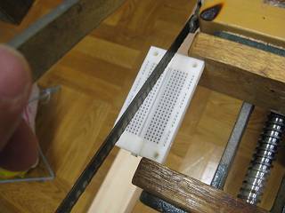 ブレッドボードを使うが、8本の信号線とアースを接続するだけなので、一番小さなブレッドボードをさらに半分に切断した。