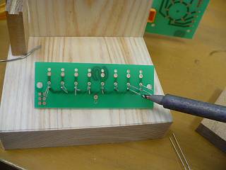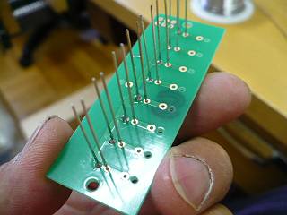 まずは、向きを間違えないように差し込んで、どちらか一方を全部ハンダ付け。
