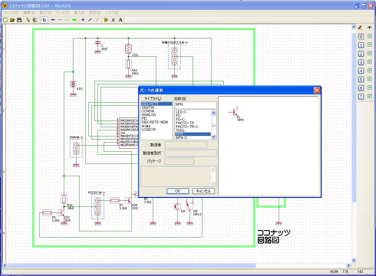使ったソフトはフリーの回路図エディタ。