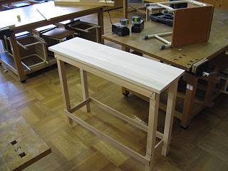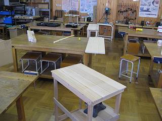 机の高さに合わせて2台机の間を埋めるミニテーブルを1台と壁に沿って出荷製品を置くためのテーブル(2台)を製作。