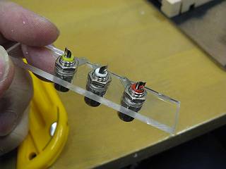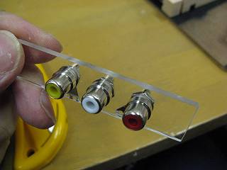 アクリル板に穴を開けて、使い勝手のいいRCA端子を取り付ける。(今までは同軸プラグだった)