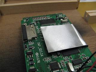 無事に接続できた。チップがそこそこ熱くなるので、放熱用にアルミ板を巻く。(チップの高さがあるので、接触はしないと判断し絶縁はしなかった)
