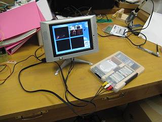 映像を見ながら、コネクタ部分のハンダ付けしてあるところへ線を接続する。