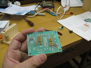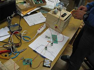 まずはココナッツ基板を製作するところからスタート。まあ、ハンダ付けは私の担当。