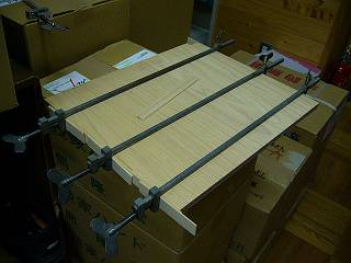 棚板二枚は20mm厚の合板を貼り合わせて作る。