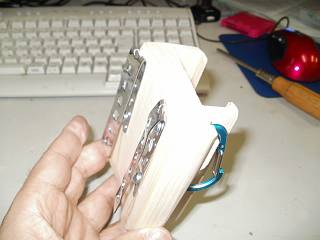 横の部分には溝をひいて,キーホルダーを取り付けた。