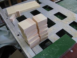 幅45mmで切断された一人分の材料。台座とペン立て部分になる。