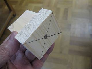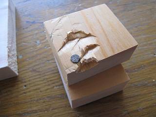 対角線で心だしをして,45mmの釘一本で固定。今回は1度しかチャンスがないので,評価はつけないこととした。