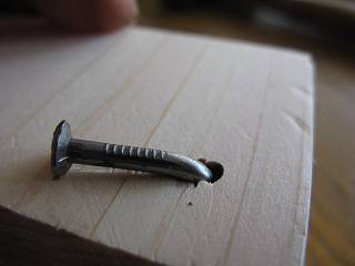 ・「釘が曲がること」・「板が割れること」。がでるので実際にやってみせる。
